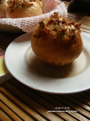 出来的面包下面有着蛋挞模的花纹,上面涨的圆圆的~煞是可爱呐~~