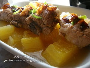-一锅水,丢入青木瓜和排骨煲几小时就可以了