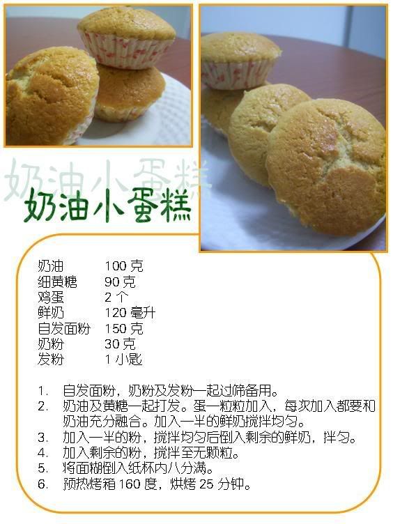 就是简单的奶油小蛋糕,只是将砂糖改成了黄糖来做,制做简单及很美味噢!