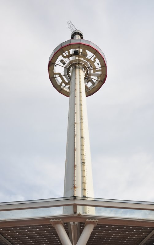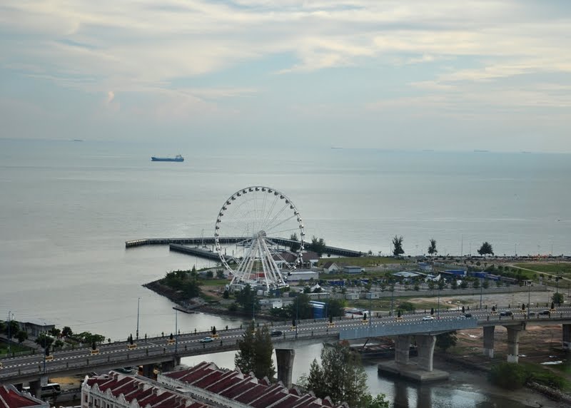 终于我们到达了Menara Taming Sari。马来西亚第一个旋转观光台。入场费是RM10(出示MyKad),如没有MyKad,就RM20 了。在还没排队时,那有一位摄影师拍照,我们站在一个很大的夜景板前,拍了一张照片。这旋转观光台一次可以载66名乘客。很快的,轮到我们了。观光台包厢提供冷气。当我们到达最顶点时(80m),一名工作人员还详细地讲解马六甲的建筑物与历史。我们拍了蛮多照片。整个旅程用了7分钟。我大力推荐这旋转观光台。