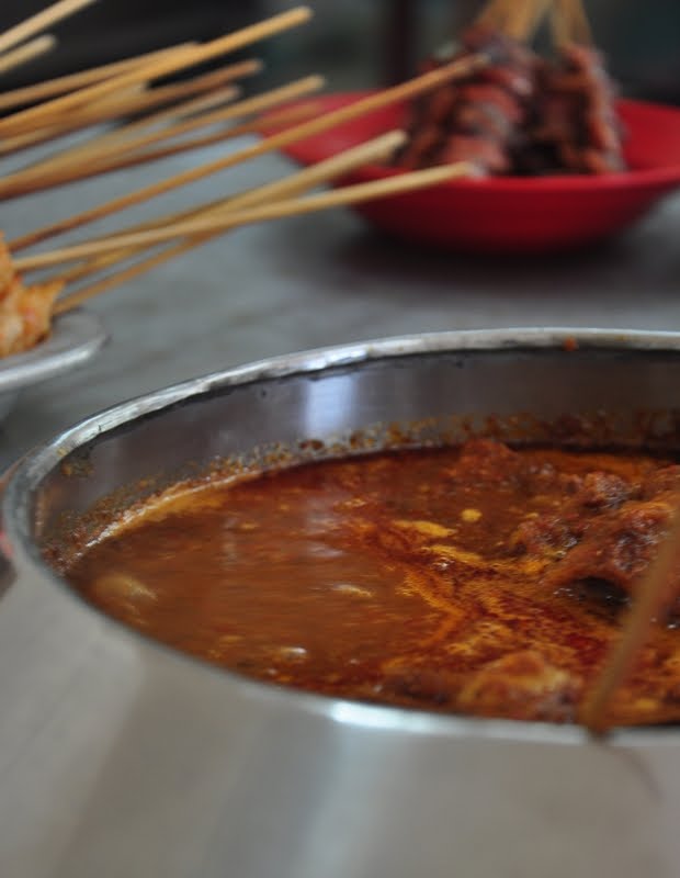 过后,我们回到酒店。可是房间还没收拾好,我们唯有坐在大厅的sofa休息和看电视。大约1.45pm,我们终于拿到房间了。房间有点小,但很干净和舒服。这酒店由LCD电视,吹风筒,DVD Player,私用厕所,冷气和astro 。从我们房间还可以看到MenaraTaming Sari。休息了一会儿,大约5pm, 我们行走到“万里香沙爹朱律”。它离酒店很近。当我们到达时,就只有一桌顾客罢了。我们俩真得非常幸运。几米没试过沙爹朱律,我特地带他一试。虽然我们俩觉得不是很卫生,可是就想试试。至少当别人问起,我们可以说我们试过啊。“万里香”提供两种不同价钱的沙爹朱律,没颜色的50仙,红色的60仙。我们叫了两杯凉茶。我们共吃了15串,RM10。