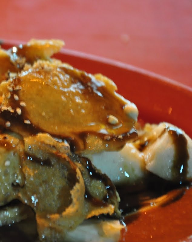 然后,我们去“佳必多海鲜美食”吃蛤。这“佳必多海鲜美食”就在“贵妇人”旁的小巷。这出名蛤和烧豆腐。我们叫了一盘蛤(RM1.50),一盘啦啦(RM1.50)和烧豆腐(RM3)。本人觉得食物普通而已。可是他们的酱很特别。一共消费了RM6。