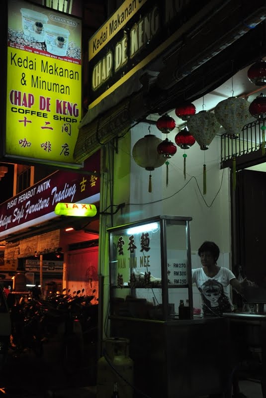 我们来到“十二间”吃云吞面。“十二间”就在“培风小学”对面。他的酱是白色的。蛮特别。不过,我们觉得有点油。但蛮好吃及便宜。RM2.70 有叉烧纪云吞。