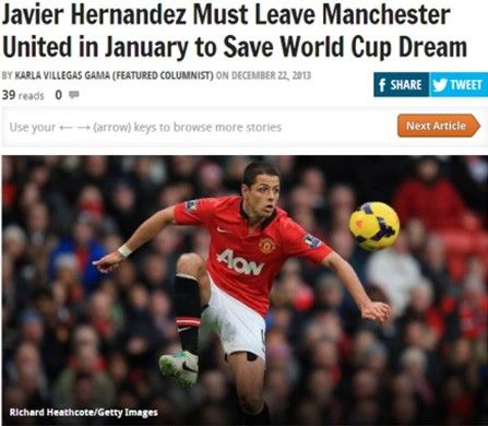 在范佩西受伤的情况下,维尔贝克也找回状态不断进球,但对于“小豌豆”埃尔南德斯来说,他在曼联的前景变的越来越黯淡。12月23日,据著名足球网站goal.com披露称,埃尔南德斯的经纪人爱德华多已经与曼联高层会面,要求和红魔重新商量墨西哥前锋的未来。而墨西哥主帅也告诫小豌豆,“他需要更多的出场,留给他的时间已经不多了。”上周末曼联3-1击败西汉姆联的联赛中,维尔贝克继续进球,而埃尔南德斯仅获得37分钟的替补出场时间,但最终没能进球。如今在莫耶斯手下,埃尔南德斯完全得不到重视,联赛至今出场9次,埃尔南德斯只有1球进账。