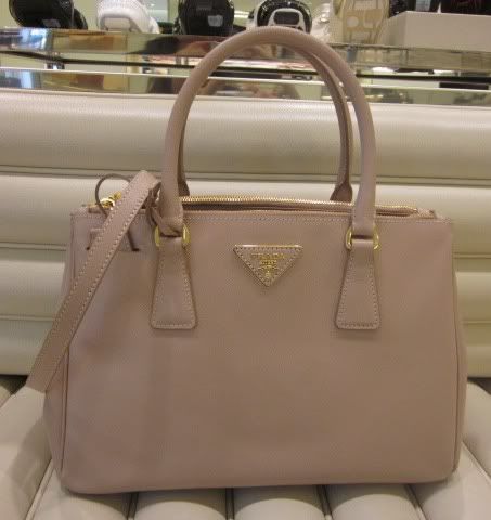 我在Prada店看到的是pink pink地的, 可是当我提着它到白灯看时,颜色又变成裸色了。。黄灯下才会pink pink吧
