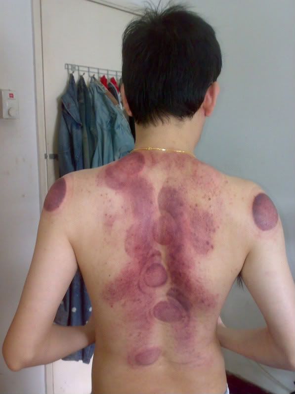以前只有跌倒受伤,跌打师帮我拔罐,