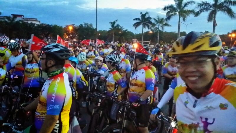 原本不打算出席,但是看到好像很热闹那样,就把时间安排一下,出席了这个活动。早上四点多起床,五点出门,乘搭六点的船过海,看来骑车的真的是有点不正常,好好周末不休息睡觉,那么摸黑起早都不懂为了什么?和佳礼弟弟跟heong去早餐,然后等待阿普抵达后,就前往去会场了。一批小折队,一下船就开始出发了。
