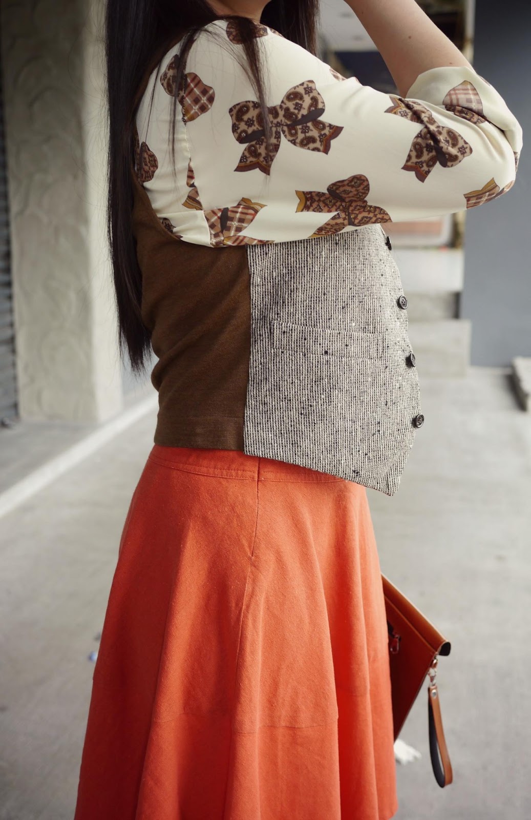 这套真的有修身哦,你看起来更瘦了。还是塑身有成的缘故? 这个配搭也很衬,我喜欢~