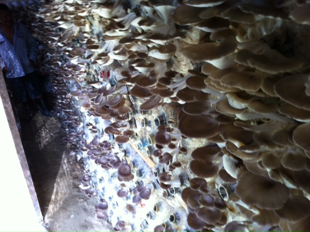 菇包开始成熟时有些菇会从菇盖旁或者推盖而出.