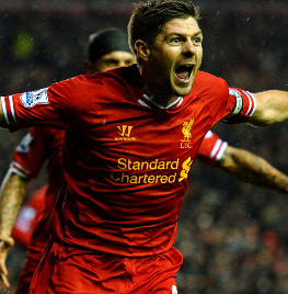 在与埃弗顿比赛时的第21分钟,杰拉德帮助利物浦先拔头筹,他接苏亚雷斯开出的角球头球建功。随后他狂奔至看台前,与苏亚雷斯以及众多红军球迷一起庆祝进球。