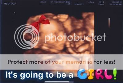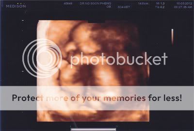 今天产检照到性别了!医生说没有看到咕咕,是个女婴。她好健康活泼,照这张3D的时候,小脚一直踢啊踢的。为了要给我们一张看到她的五官比较清楚的照片,医生很有耐心的等了2-3分钟。呵呵,鼻子很挺咧,像我和老公