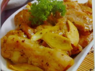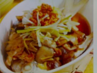 做法:1)烧热麻油 ,爆香蒜茸和姜片 ,倒入材料A和调味料A ,拌匀盛起备用 .