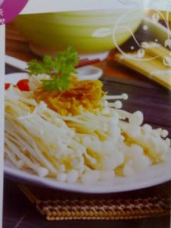 做法:1)把金针菇去掉蒂头 .洗净后整齐排在碟上隔水蒸熟后取出备用 .