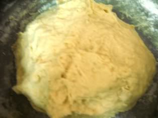 2。用检水来揉面团(俭水要慢慢的放入,如果感觉面团已成形,软硬ok,就无须在加检水) 将面揉成团(揉至软硬适中)