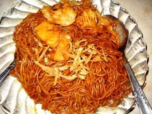 6。将煮好的面条放在盘中趁热捞匀(盘中的调味料有:葱油酥,黑酱油+一点糖调匀(这样才能减少黑酱油的"苦涩味"),酱油,胡交粉)