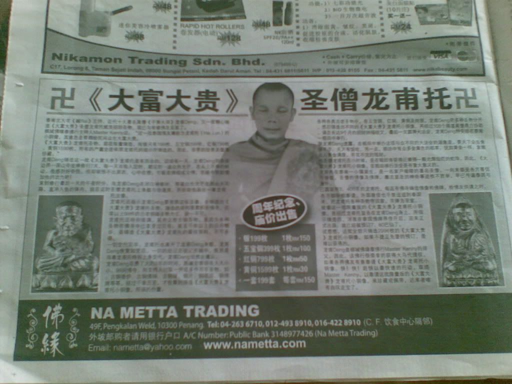 最近看新生活报,看见一个佛牌叫"大富大贵" 写着是hai lun龙甫托的.大家知道是什么来的吗?