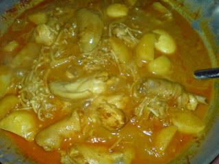 5.等咖哩汁滚沸后,再加入椰浆和适量的盐..等待马铃薯完全熟透后和滚沸后,香喷喷的咖哩鸡就可以上桌了.. |
