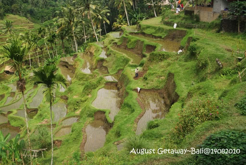 看见的只是一片水泥,或一些刚插秧的。Tenggalalang,刚好是那个情景,确实有点失望。还好,我看见不算绿油油的梯田,