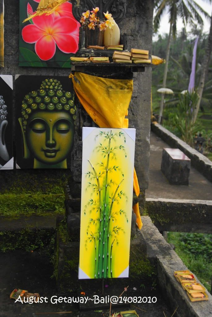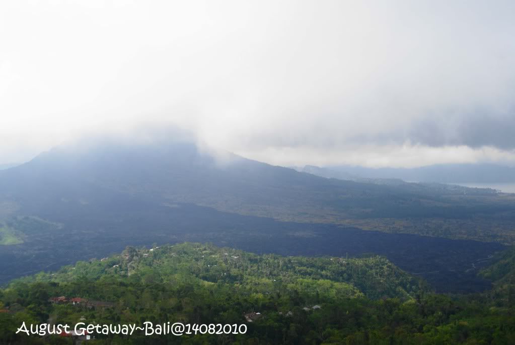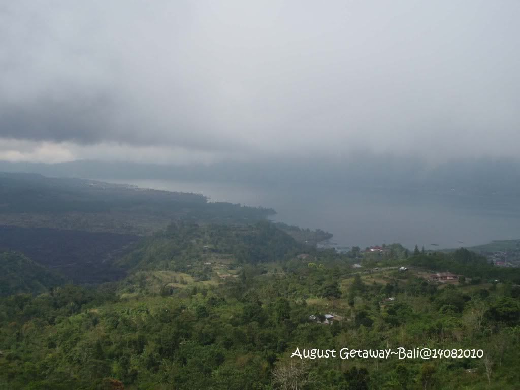 ***小店摆卖的一些物品,耳环,艺术品,油画等等*** 逗留了大概30分钟左右,启程到Kintamani去。 Kintamani: Batur Volcano & Lake Batur 很多到这里的游客都会选择在这里用餐。一边远眺火山,一边享受自助午餐。据说这个景点最好是在中午之前到达。原因是中午过后这个火山顶会被云层遮盖。这一天我们确实是看不到火山顶。太阳不算很晒,但是我们拍照时个个的眼睛都是咪咪的,