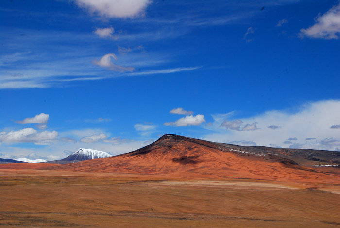 下午携带GPS、地图轻装上山前往天台河上游探路。地图很有意思,天台河上游有个近九十度的拐弯,直行是条季节河百流河。到了两河交叉处才发现,所谓的长流河天台河很小,季节河百流河则一片宽阔滩涂,望而生畏。先前判断是正确的,百流河是岗扎日等数座高大雪山的汇流,怎么可能会小于可可西里山脉为源的天台河了。但此时已经更难过河了,顺着天台河翻越可可西里山脉。(地势上,对岸草坝,此岸山地死角。)从百流河源头绕过又绝无可能。在山顶上坐了很久,这才深刻意识到此时的羌塘才是绝对无人区,没有探矿的,自驾穿越的,淘金的,盗猎的,出风头的……