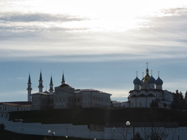 在喀山,你可以看到世界上其他地方看不到的两大宗教和睦共存的景象,在这里,有27座东正教教堂和31座伊斯兰教清真寺。站在克里姆林宫内,一边是典型东正教风格的,有400多年历史的布拉格维申斯克大教堂,而另一边则是宏伟的库尔·沙里夫清真寺。在克里姆林宫内,一些头围围巾的女士便是伊斯兰教徒,他们形态类似与中东地区的人们。很多人来到这里会产生一种错觉,这里仿佛是中东国家的区域。这或许是人类几千年历史上都从未有过的宗教奇观。