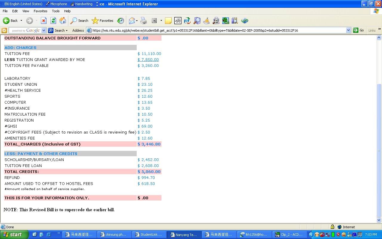 这些贷款资料每年都会不一样,但是这些详情都会在ntu的网页里详细地解释。我告诉你的是根据05/06年的。