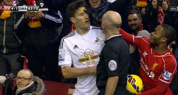 利物浦边锋斯特林在4-1大胜斯旺西的比赛中当着裁判的面挥手拍打对方后卫费尔南德斯的面部,当值主裁却未做任何判罚,对此天空体育的足球评论员加里-内维尔慨叹这名小将运气真好。