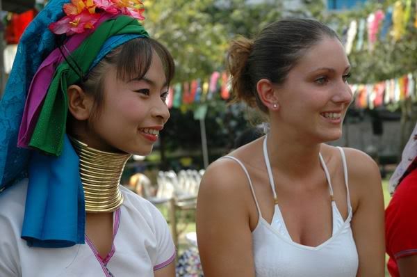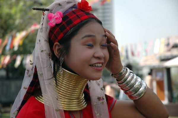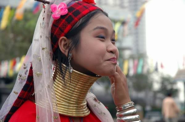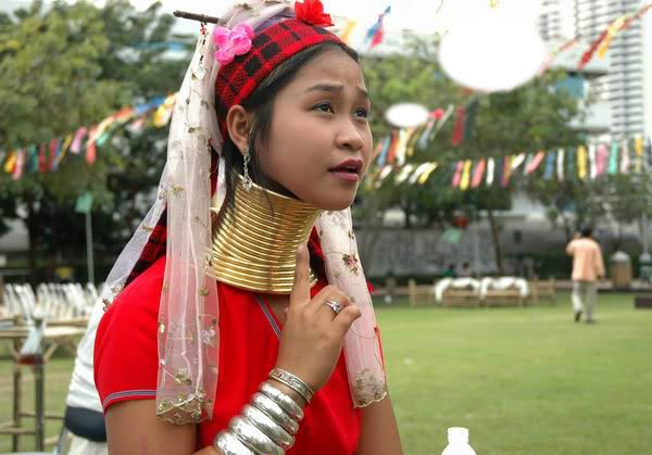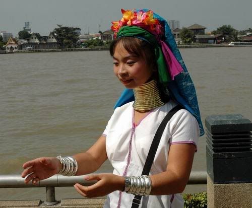 我在湄南河畔与这两位Karen 族长頸姐妹相遇绝对是偶然及真实的事。