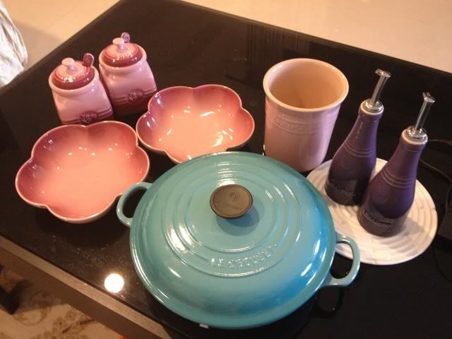 昨天去新加坡的收获。终于买了上次看中的oil & vinegar drizzle,也买了crock, 花花碟,pot和26 carribean blue buffet. 那个carribean blue真的很多defects,结果从robinson运来这个比较好的。服务真的没话说。