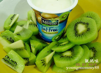 C4 offer,Kiwi 5粒才RM5.99,买了1盒,但是还不是很熟,切片时分成2粒,看熟的甜不甜,结果熟的切成圆形的,很甜,还不够熟的就酸酸!呵呵~~