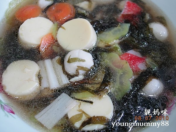 另外再配上紫菜豆腐鱼丸汤,就是这一天的晚餐了。