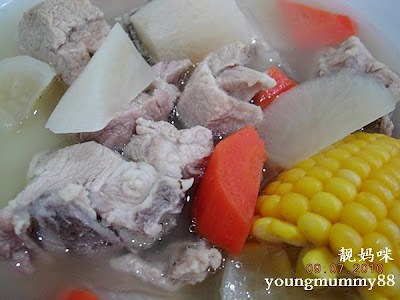 我煮汤都是用来慢火煲至少1个小时,而且配料都是让汤变甜的材料,例如:玉米,红枣,枸杞。