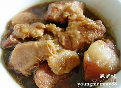 很少煮芋头的我,不确定芋头要焖多久,所以炸了后跟肉一起焖,到肉软是芋头已经不见了! >_<