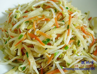 这是炒好的内馅,里面有:沙葛丝,红萝卜丝,豆芽,青葱,葱蒜。