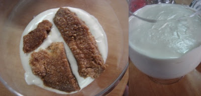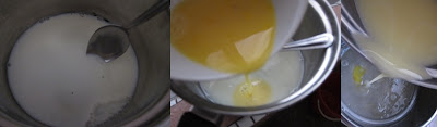 1。牛奶和糖混合,用温火煮溶糖,边煮边搅拌~待冷。