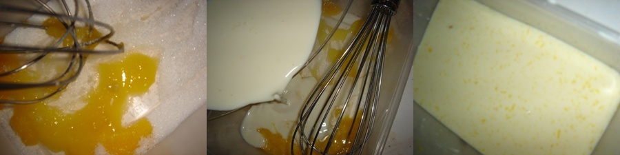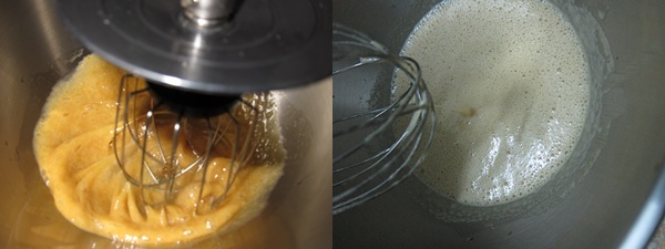 1.将蛋黄+糖+盐用手搅拌到蛋黄变浅色糖也溶解了,慢慢的加入蔬菜油,这时可以加入香兰汁或橙汁待搅拌均匀后就可以加入低粉和发粉了,待搅拌后就放一旁备用.