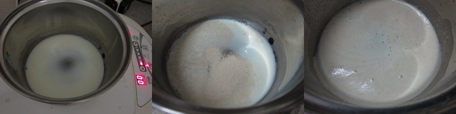 1.將牛奶稍微加溫到手摸不燙的程度(約35度c),將細砂糖及乾酵母加入攪拌均勻 放置5分鐘