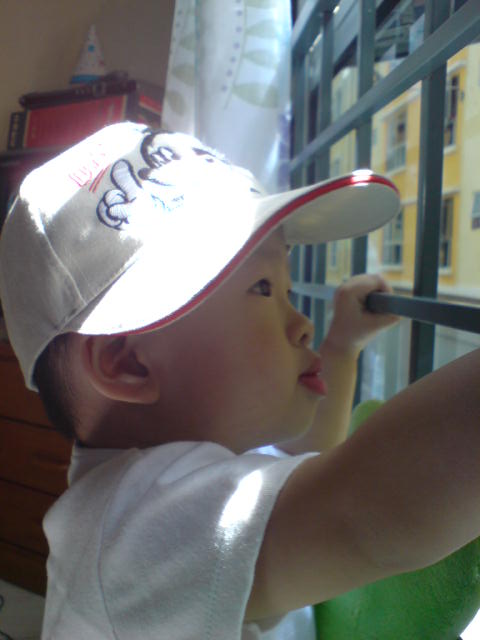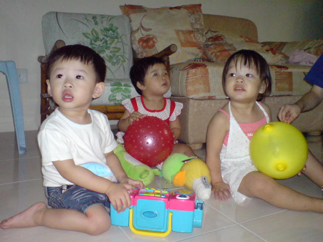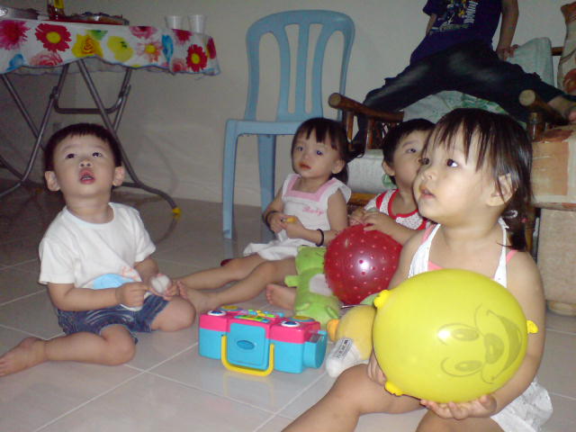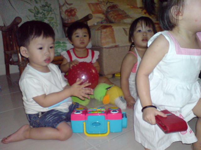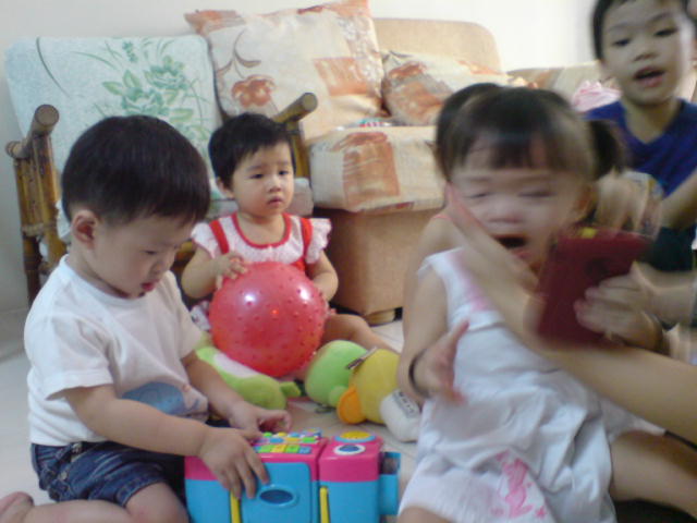 于是妈妈就叫我就把他抱进去playpen里面以免我没办法吃饭。