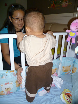 除此之外,涵熙也学会自己站着然后坐下来了