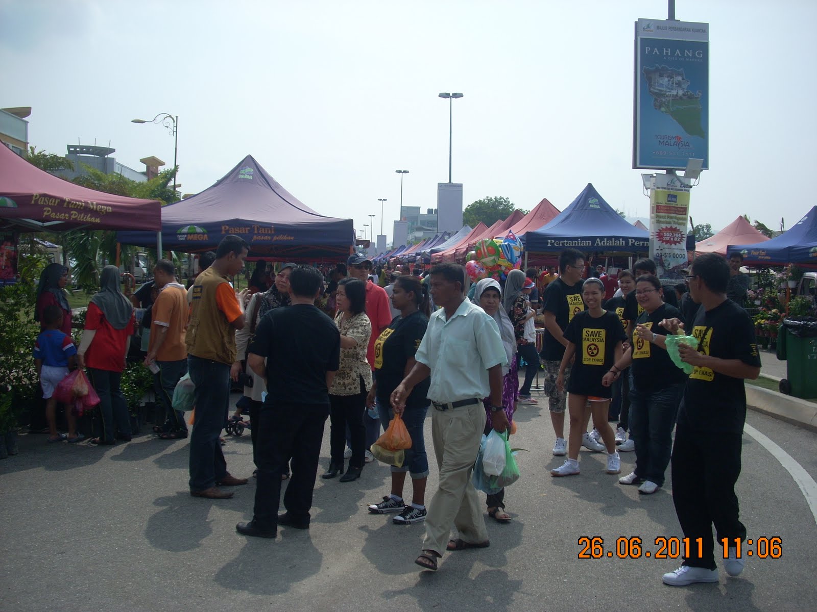 Sekitar jam 10.30 pagi kenderaan yang membawa Ahli Parlimen Kuantan, YB Fuziah Salleh dilihat memasuki kawasan dihadapan Stadium Darul Makmur. Terdapat maklumat, program himpunan bantah Lynas juga akan diadakan oleh Parti Keadilan Rakyat (PKR) di kawasan stadium. Akibat sekatan jalanraya yang diadakan untuk menghalang mereka, maka lokasi telah diubah ke kawasan Pasar Tani Mega dihadapan Restoran The Oasis, Malay Town. Beberapa orang pemimpin kanan PKR Kuantan juga dilihat mengekori YB Fuziah. Turut hadir ialah YB Chang Ming Khai (ADUN Simpang Pulai, Perak) dan beberapa orang anggota AMK Pahang. Rombongan seramai lebih kurang 50 orang terbabit bergerak bersama YB Fuziah beramah mesra dengan orang ramai dan peniaga di pasar tani terbabit. Mereka turut memakai baju dan kain rentang "Stop Lynas". Program berakhir sekitar jam 12.30 tengahari dengan sessi bergambar di pintu masuk kawasan terbabit (pasar tani). Sebelum beredar satu sidang media ringkas telah diadakan di kawasan ini. Kelihatan beberapa orang pegawai FAMA memantau dan mengawasi pergerakan mereka. Pihak polis tidak kelihatan di kawasan itu, mungkin mereka tersalah strategi atau tidak jangka lokasi boleh bertukar ke kawasan itu.