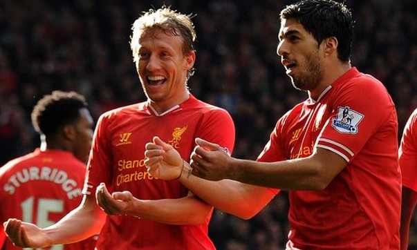 上周六,由于阿森纳败走斯托克城,苏亚雷斯的进球帮助利物浦暂时位居联赛积分榜第二位。