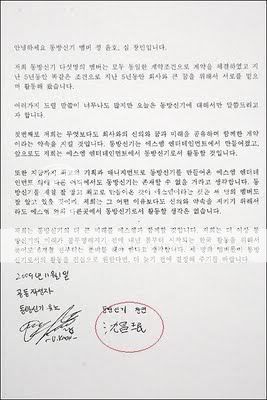 Regarding the recent court ruling; three members are now free to pursue personal projects, however all DBSK-related work must be done through SME. Yunho and Changmin intend to promote DBSK in Korea next spring, and we feel that it should be planned at least six months in advance. SME asks the three members to respond to this by November 12th.