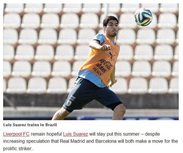 据《回声报》报道,利物浦拒绝将苏亚雷斯出售给巴萨、皇马,