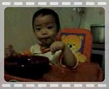 我只是先放点面包给他自己用汤匙,不过他手不是很会去把食物弄起来!