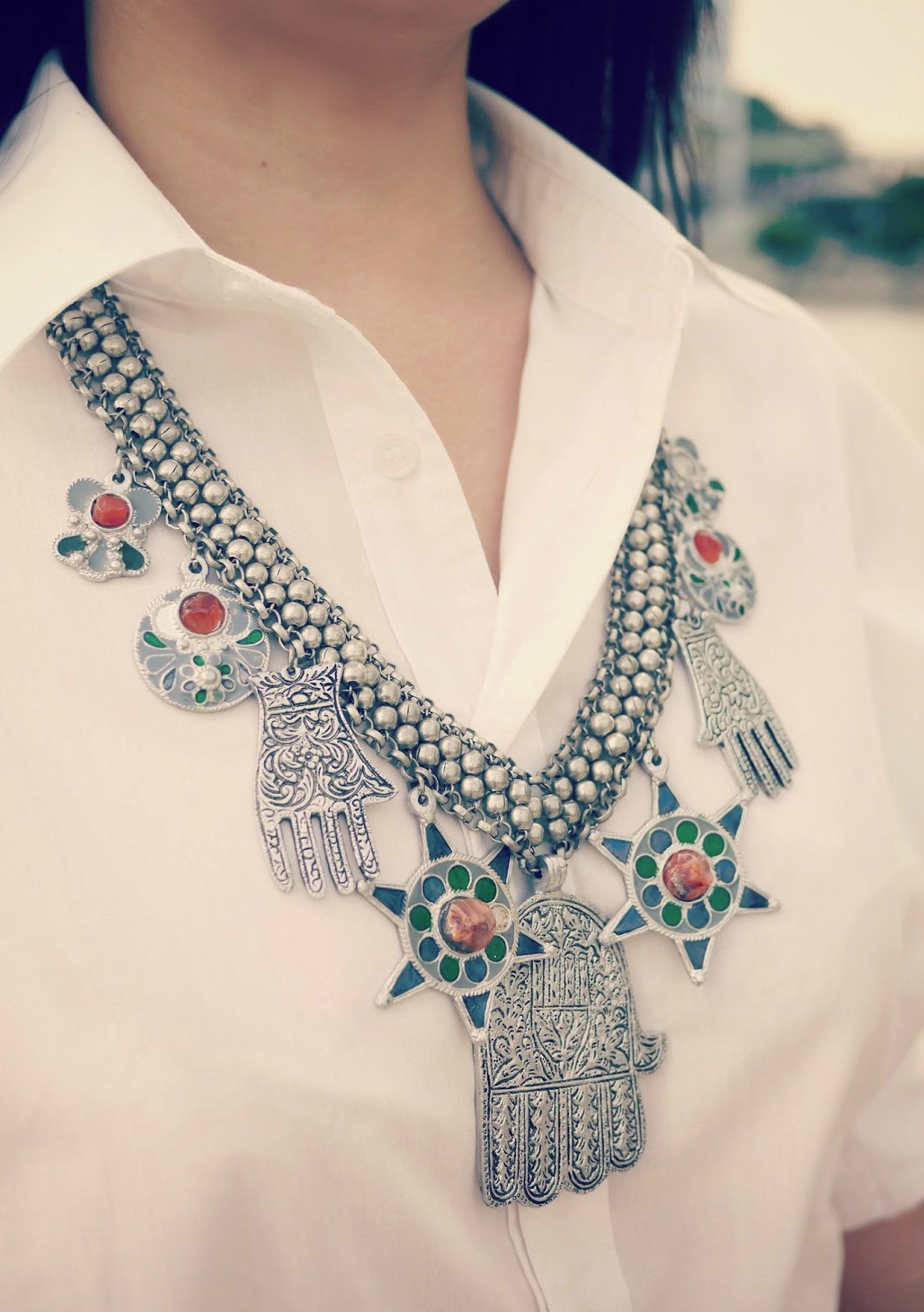 比比的 时尚日记 ❤ 小露性感白色小洋装 + 粉彩水晶质感项链