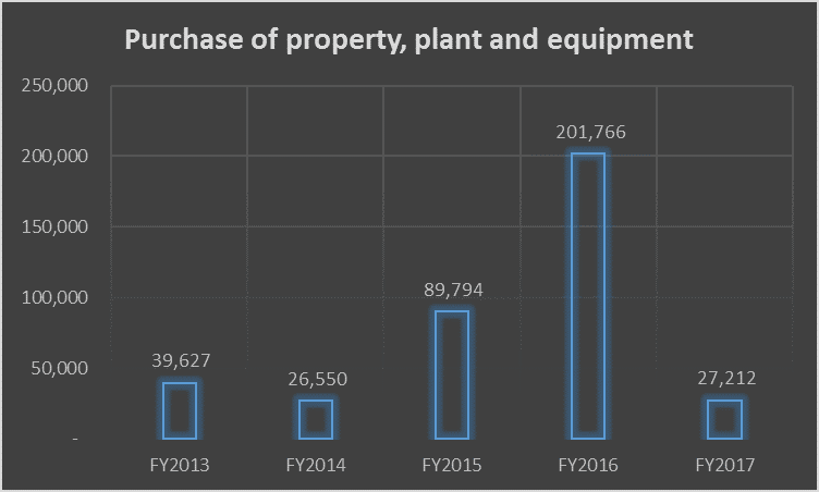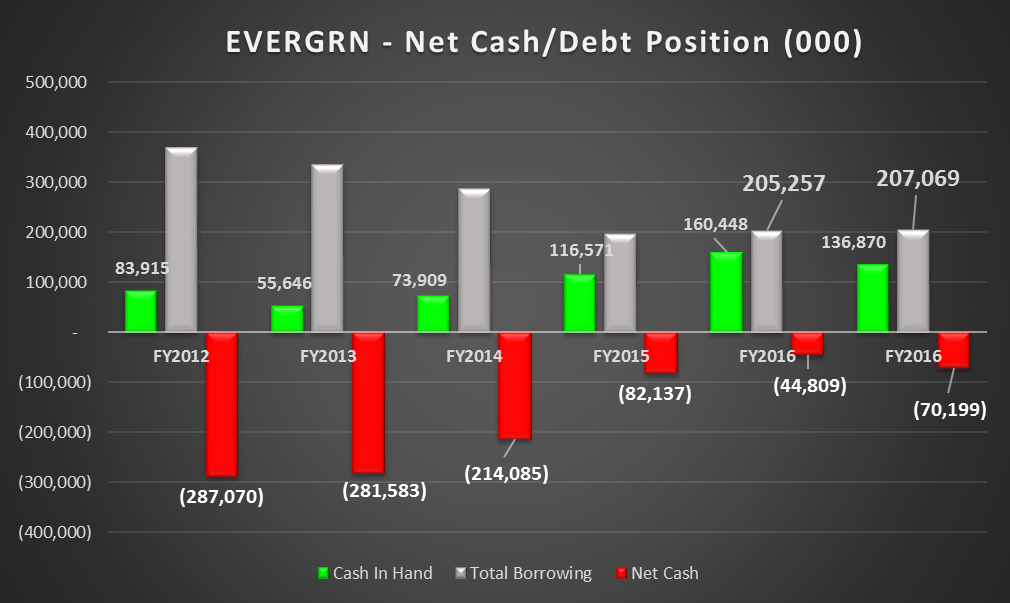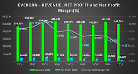 EVERGRN在过去6年犹如坐了一趟过山车,从FY11和FY12过渡期到FY13和FY14的低潮期,再到FY15和FY16的盈利高峰期。基本上,其营业额在FY11至FY16期间可说是保持不变,长年处于RM1b左右。虽然产品平均销售价在FY16下滑,但是其收入却被美金兑马币的强势以及较高的销售量抵消。