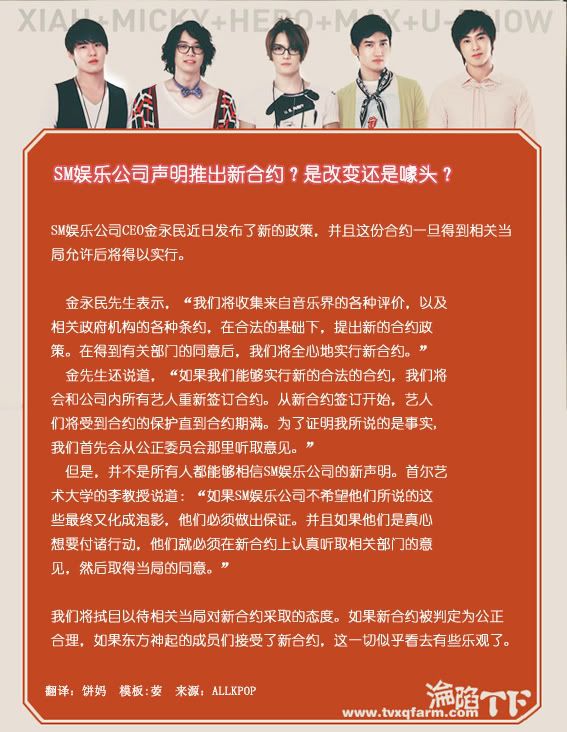 SM Entertainment Representative, Kim Young Min, who attended the press conference which was held on the 2nd of November 2009 at 63 Tower, has expressed, “We would collect all comments from music and entertainment industries, related government departments, cultural and tourism board, fair trade departments, educational circles and legislative bodies, based on the law to adjudicate a new contract policy. After the approval from the respective authorities, we would then put it into action. Then follow it (new contract policy) enthusiastically.”