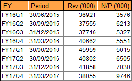 PERIOD | 31 Mar 2017 | 31 Mar 2016 | 31 Mar 2017 | 31 Mar 2016 | $$'000 | $$'000 | $$'000 | $$'000 |