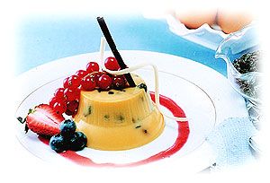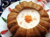 2. 將剩餘鮮奶加調味料煮熱,拌入粟粉混合物煮熟,放入已塗油碟內,待凍.