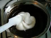 4. 將混合物倒入已掃油盆內,待凍後放入雪櫃,雪至凝結,切件. |